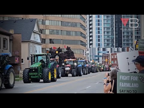 "A convoy of tractors from the Township of Wilmot, Ontario, rolled through the Waterloo Region HQ in protest against the government’s plan, backed by the province, to expropriate 770 acres of farmland for undisclosed purposes. 'These are farms that have often been in the family since the 1800s. To think that you’re going to have your farm, livelihood, home, and everything taken away from you on such short notice... If this can happen to these farmers—it can happen to farmers anywhere,' said Kevin Thomason, Vice Chair of the Grand River Environmental Network. The farmers are steadfast in their refusal to sell their farmland, despite the threat of government expropriation."